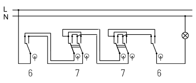 schémy na 6-7-7-6 sú často nedostupné, lebo ďalší vypínač č.7 sa pripojí rovnako ako ten prvý vypínač č.7.